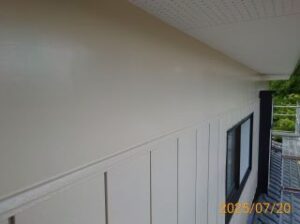 このように下地を整えて(ひび割れ補修作業)から下塗り&上塗り2回塗り仕上げで施工しました。