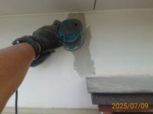 モルタルで左官補修し、乾燥させて電動工具で平滑に仕上げます。