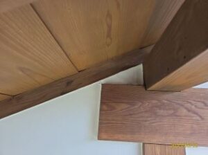漆喰部分の上の方。ぽっかり隙間というか一部分抜け落ちている箇所を発見。