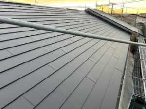 軽く耐久性が高いガルバニウム鋼板の屋根材でカバー工法(重ね葺き)完了です。