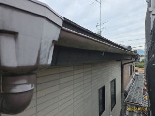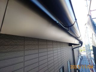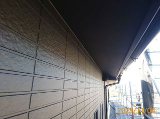 | 使用材料 | 外壁: マイルドシーラーEPO下塗り ミズタニ ナノウォール15 黒 3分艶 雨樋・破風板・戸袋等: プレミアムNADシリコン 黒 5分艶 軒天: ケンエースG-Ⅱ N-25色 屋根: プレミアム無機ルーフ RC-110(ストレートブラック)色 |